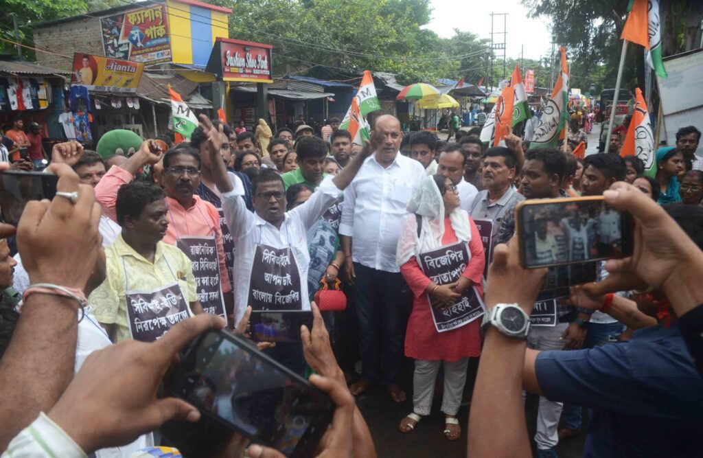 উলুবেড়িয়ায় তৃণমূলের অভিনব প্রতিবাদ মিছিল