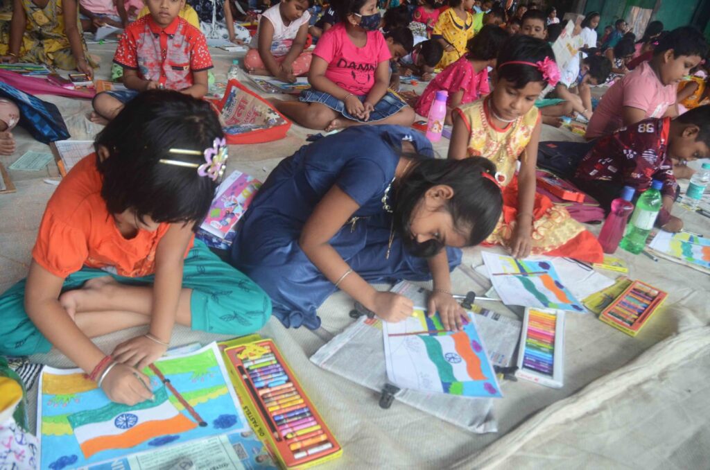 নিজস্ব প্রতিনিধি, হাওড়া নিউজ ২৪, উলুবেড়িয়া- রবিবার সকাল থেকেই আকাশ কালো মেঘে ঢেকেছিল। পাশাপাশি মাঝে মধ্যেই ঝমঝমিয়ে বৃষ্টি পড়ছিল। আর এর মাঝেই কয়েকশো ক্ষুদে মন দিয়ে এঁকে চলেছে স্বাধীনতা দিবসের নানা ছবি। সোমবার দেশের ৭৫ তম স্বাধীনতা দিবস। আর স্বাধীনতা দিবসের আগে রবিবার দুপুরে উলুবেড়িয়া শ্রী শ্রী আনন্দময়ী কালীবাড়ি প্রাঙ্গনে উলুবেড়িয়া নোনা অ্যাথালেটিক ক্লাবের উদ্যোগে বসে আঁকো প্রতিযোগিতার আয়োজন করা হয়েছিল।