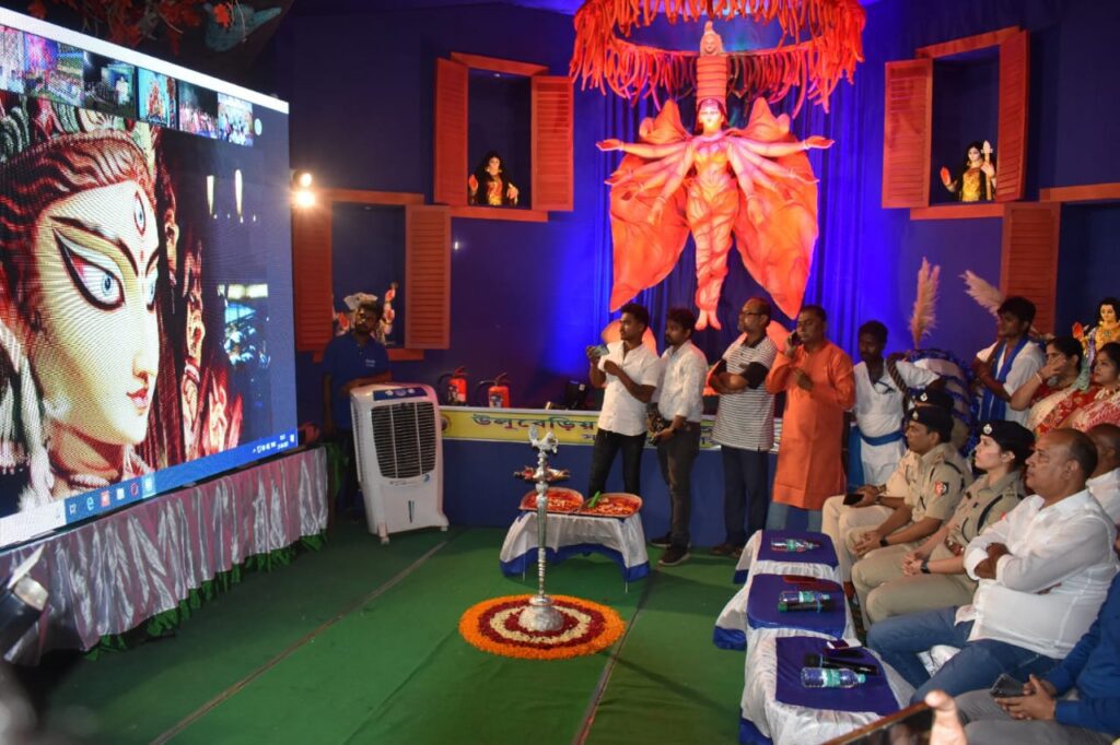 নিজস্ব প্রতিনিধি, হাওড়া নিউজ ২৪, উলুবেড়িয়া – মহালয়ার পূর্ণ লগ্নে রাজ্যের ২৬৩ টি পুজোর ভার্চুয়ালি উদ্বোধন করলেন মুখ্যমন্ত্রী মমতা বন্দ্যোপাধ্যায়। রবিবার সন্ধ্যায় কলকাতার চেতলা অগ্রগামী ক্লাব থেকে পুজোগুলির ভার্চুয়ালি উদ্বোধন করেন মুখ্যমন্ত্রী। এদিন তিনি রাজ্যের বিভিন্ন জেলার পাশাপাশি হাওড়া গ্রামীণ জেলার উলুবেড়িয়া পূর্ব, শ্যামপুর, আমতা, বাগনান, উদয়নারায়নপুর এবং উলুবেড়িয়া উত্তর কেন্দ্রের ৬ টি পুজোর উদ্বোধন করেন মুখ্যমন্ত্রী মমতা বন্দ্যোপাধ্যায়।