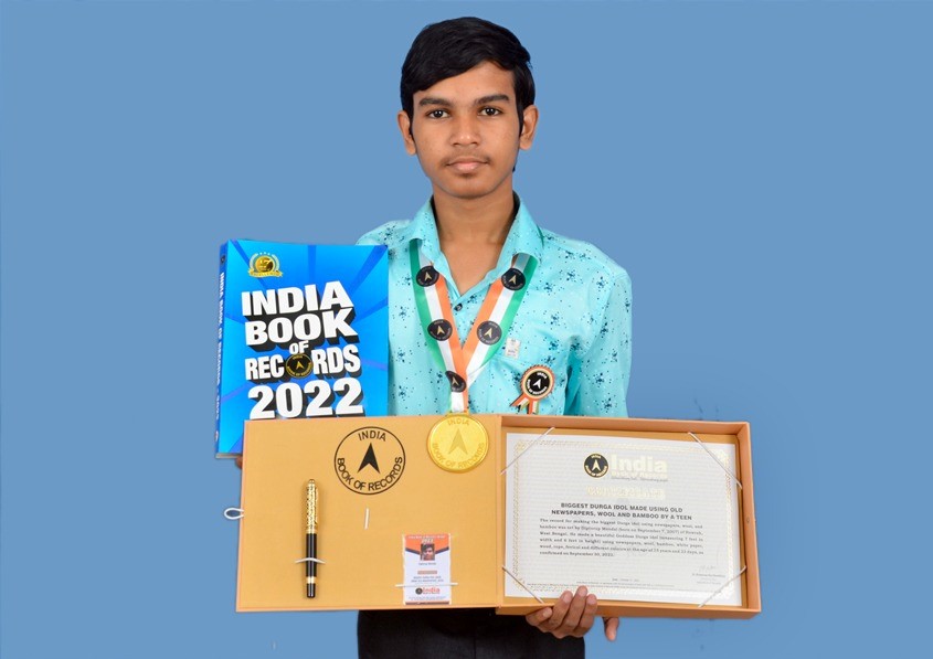 ছোটবেলা থেকেই আঁকার উপর ঝোঁক দিপ্তরূপের। সেভাবে কোথাও আঁকা না শিখলেও পড়াশুনার মাঝে ছবি আঁকার পাশাপাশি নানা জিনিষ তৈরী করতে থাকে দিপ্তরূপ। সে জানায় বাঁশের কাঠামোর উপর খবরের কাগজ, উল, সাদা কাগজ দিয়ে ৬ ফুট লম্বা ও ৭ ফুট চওড়া দুর্গা প্রতিমা তৈরী করার পর গত ২৩ সেপ্টেম্বর কাজের নমুনা ইন্ডিয়া বুক অফ রেকর্ডসের দপ্তরে পাঠাই। গত ২১ অক্টোবর সংস্থার তরফে আমার হাতের কাজকে স্বীকৃতি দেওয়া হয়। এরপর রবিবার সংস্থার পাঠানো বিভিন্ন উপহার হাতে পাই।