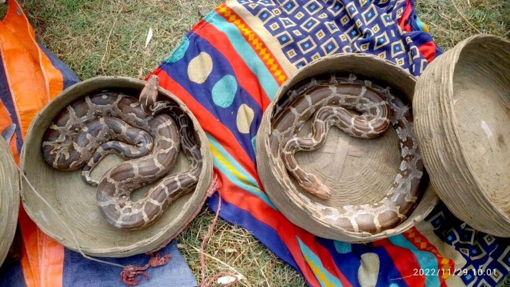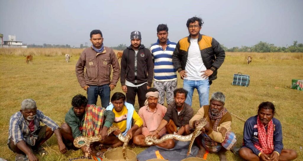 চিত্রক প্রামানিক জানান আমরা নদীর পাড়ে গিয়ে দেখি সেখানে ১১ জন সাপুড়ে আছে এবং  তাদের কাছে দুটি অজগর সাপ আছে। তিনি জানান সাপুড়েদের কাছ থেকে সাপ ছাড়াও তল্লাশি চালিয়ে বিভিন্ন ধরনের অস্ত্র এবং পাখি ধরার ফাঁদ উদ্ধার হয়।  চিত্রক জানান কয়েকদিন ধরেই আমাদের কাছে খবর ছিল উড়িষ্যা থেকে কয়েকজন সাপুড়ে এলাকার মানুষকে ভুল বুঝিয়ে টাকা তুলছে। সেইমত আজ ওদের ধরা হল এবং ওদের কাছ থেকে সাপ উদ্ধার হয়েছে। বন দপ্তর সূত্রে খবর উদ্ধার হওয়া সাপ দুটিকে পর্যবেক্ষনে রাখার পর পরিবেশে ছেড়ে দেওয়া হবে।