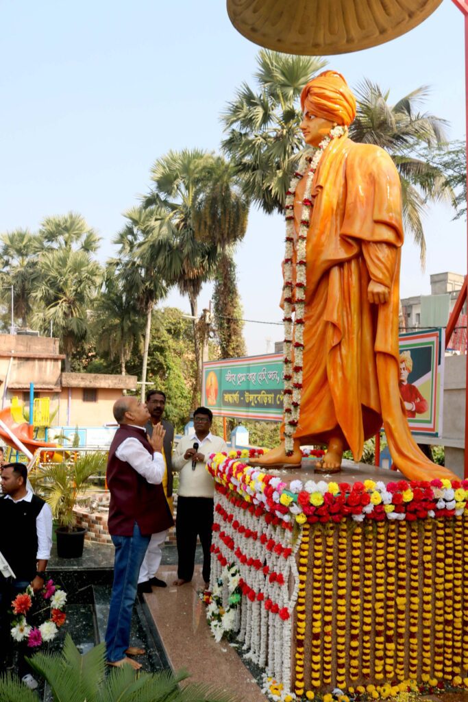 নিজস্ব প্রতিনিধি, হাওড়া নিউজ ২৪, উলুবেড়িয়া – বৃহস্পতিবার সারা রাজ্যের পাশাপাশি হাওড়া গ্রামীণ জেলার বিভিন্ন প্রান্তে শ্রদ্ধার সঙ্গে পালিত হল বীর সন্নাসী স্বামী বিবেকানন্দের ১৬১ তম জন্মজয়ন্তী। এদিন উলুবেড়িয়া পুরসভার উদ্যেগে বিবেকানন্দ শিশু উদ্যানে স্বামীজির জন্মদিন পালন করা হয়। এখানে স্বামী বিবেকানন্দকে শ্রদ্ধা জানান রাজ্যের পূর্ত এবং জনস্বাস্থ্য ও কারিগরি মন্ত্রী পুলক রায়। অনুষ্ঠানে অন্যদের মধ্যে উপস্থিত ছিলেন বিধায়ক বিদেশ বসু, উলুবেড়িয়া পুরসভার চেয়ারম্যান অভয় দাস, ভাইস চেয়ারম্যান ইনামুর রহমান, পুরসভার জল দপ্তরের মেয়র ইন কাউন্সিল আকবর শেখ, সমাজসেবী গৌতম বোস সহ পুরসভার বিভিন্ন ওয়ার্ডের কাউন্সিলররা।