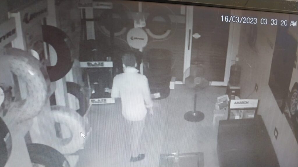 জানা গেছে বুধবার রাতে এক দুস্কৃতী জাতীয় সড়কের পাশে থাকা শোরুমের পিছনের গ্রীলের জানালা ভেঙে ভিতরে ঢুকে গাড়ির টায়ার, টায়ার সেন্সর সহ নগদ টাকা চুরি করে চম্পট দেয়। বৃহস্পতিবার সকালে শোরুমের মালিক শোরুম খোলার পর চুরির বিষয়টি তার নজরে আসে। শোরুমের মালিক বিশাল ভুঁইয়া জানান বৃহস্পতিবার সকালে শোরুম আসার পর চুরির বিষয়টি নজরে আসে। তিনি জানান শোরুমের সিসিটিভি ফুটেজ খতিয়ে দেখা গেছে রাত ১টা ৪৫ মিনিট নাগাদ ওই দুস্কৃতী শোরুমে ঢোকে ৩টে ৪৫ পর্যন্ত ছিল। তার দাবি শোরুম থেকে প্রায় ৭৫ হাজার টাকার জিনিষপত্র চুরি হয়েছে।