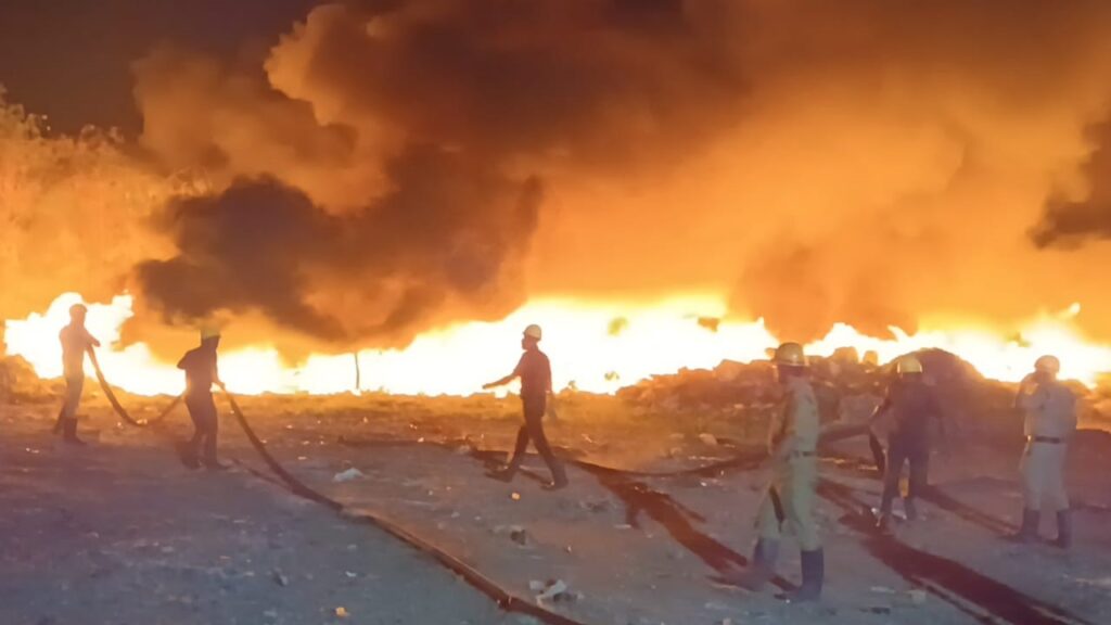নিজস্ব প্রতিনিধি, হাওড়া নিউজ ২৪, বাগনান- রবিবার রাতে বাগনান থানার চন্দ্রপুরে বিধ্বংসী আগুনে ভস্মীভূত হয়ে গেল একটি বন্ধ প্লাস্টিকের কারখানা। স্থানীয় সূত্রে জানা গেছে রবিবার রাতে ১৬ নং জাতীয় সড়কের পাশে চন্দ্রপুরে একটি বন্ধ প্লাস্টিকের কারখানায় আগুন লাগে। আগে এই কারখানায় ব্যবহৃত প্লাস্টিকের বোতল থেকে সিন্থেটিক তুলো এবং সুতো তৈরী হত।