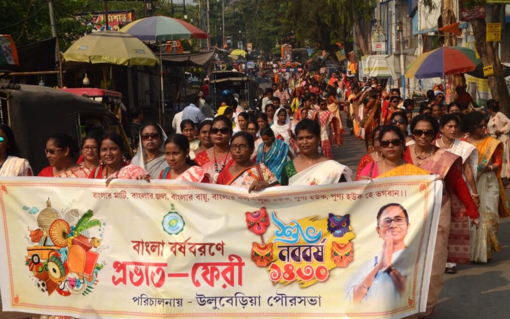 নিজস্ব প্রতিনিধি, হাওড়া নিউজ ২৪, উলুবেড়িয়া- বৈশাখ মানেই নতুন আশা, নতুন সংকল্প। আর এই আশা সংকল্প কে সঙ্গে নিয়েই শুক্রবার নতুন বছরকে স্বাগত জানালো সবাই। এদিন রাজ্যের বিভিন্ন প্রান্তের পাশাপাশি উলুবেড়িয়া পুরসভার উদ্যেগে নতুন বছরকে স্বাগত জানানো হল। এদিন সকালে উলুবেড়িয়া পুরসভার সামনে থেকে বর্ণাঢ্য পদযাত্রা শুরু হয়ে উলুবেড়িয়া শহর পরিক্রমা করে উলুবেড়িয়া রবীন্দ্র ভবনে গিয়ে শেষ হয়।