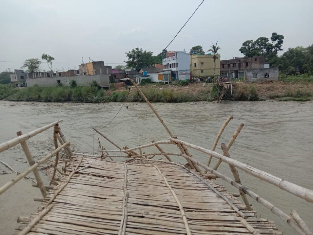 জলের চাপে ভেঙে গেল বাঁশের সেতু