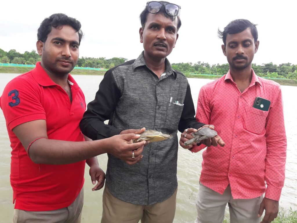 নিজস্ব প্রতিনিধি, হাওড়া নিউজ ২৪, উলুবেড়িয়া- বুধবার সকালে ২টি কচ্ছপকে উদ্ধার করে জলাশয়ে ছেড়ে দিল পরিবেশকর্মী দেবাশীষ সাঁতরা। জানা গেছে এদিন রাজু কুমার মন্ডল এবং নবকুমার মন্ডল নিজেদের মাছের ভেড়ীতে যাচ্ছিলেন। সেই সময় মহিশালী প্রাথমিক বিদ্যালয়ের কাছে দুই যুবকের নজরে পড়ে ২টি কচ্ছপ জমি দিয়ে যাচ্ছে। এরপরেই তারা কচ্ছপ দুটিকে উদ্ধার করে। পরে পরিবেশকর্মী দেবাশীষ সাঁতরাকে বিষয়টি জানালে দেবাশীষ সাঁতরা কচ্ছপ দুটিকে উদ্ধার করে জলাশয়ে ছেড়ে দেয়।