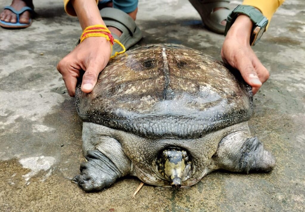 নিজস্ব প্রতিনিধি, হাওড়া নিউজ ২৪, বাগনান- একটি ৬ কেজি ও একটি ১৫ কেজি ওজনের দুটি ময়ুরী বা তিল কাছিম উদ্ধার করল পরিবেশকর্মীরা। জানা গেছে সোমবার সকালে আমতার সারদা গ্রামের বাসিন্দা পরিমল প্রামানিক জমির পাশে একটি ৬ কেজি ওজনের কাছিম দেখতে পেয়ে সেটি বাড়িতে নিয়ে আসেন। পরে তিনি পরিবেশকর্মী চিত্রক প্রামানিকে খবর দিলে চিত্রক, সুমন্ত দাস ও ইমান ধারা কাছিমটিকে উদ্ধার করে জলাশয়ে ছেড়ে দেয়। অন্যদিকে বাগনানের চন্দ্রভাগ গ্রামের বাসিন্দা প্রবীর মান্না মাছ ধরার জন্য খালে লোহার মুগরি পাতেন। সেখানেই ১৫ কেজি ওজনের একটি কাছিম আটকে পড়ে। সোমবার সকালে খবর পেয়ে চিত্রক সুমন্ত, ইমন ও রঘুনাথ মান্না কচ্ছপটিকে উদ্ধার করে জলাশয়ে ছেড়ে দেয়।