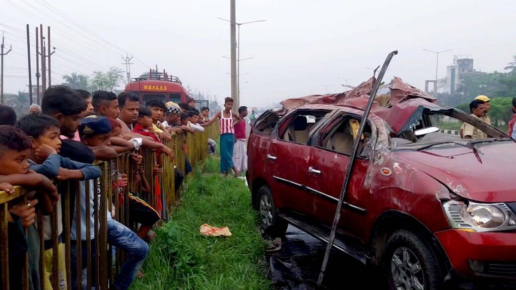 পুলিশ ও স্থানীয় সূত্রে জানা যায় বুধবার বাগনানের মুরালীবাড় এলাকার এক মহিলার মৃত্যু হয়।বাগনানের মুরালিবাড় এলাকার লোকেরা সেই মৃতদেহ দাহ করার জন্য বাউড়িয়ায় আসেন। জানা গেছে মৃতদেহ দাহ সেরে একটি প্রাইভেট গাড়িতে করে ৬ জন বাগনানে ফিরছিলেন। ভোর ৫টা নাগাদ প্রাইভেট গাড়িটি নিয়ন্ত্রন হারিয়ে রাস্তার পাশের বিদ্যুতের পোস্টে ধাক্কা মেরে রাস্তার মাঝখানে চলে আসে। সেইসময় অন্য একটি প্রাইভেট গাড়ি রাস্তার মাঝখানে থাকা গাড়িটিকে ধাক্কা মারে। রাস্তার মাঝখানে থাকা গাড়িটি পাল্টি খেয়ে উল্টে যায়। গাড়িটি দুমড়ে মুচড়ে যায়। অন্যদিকে কোলাঘাটের দিকে যাওয়া গাড়িটির সামনের অংশ দুমড়ে মুচড়ে যায়। দুটি গাড়ির ১০ জন আরোহী মারাত্মক জখম হন। দুর্ঘটনার পর পুলিশ আহতদের উদ্ধার করে উলুবেড়িয়া শরৎচন্দ্র চট্টোপাধ্যায় মেডিকেল কলেজে নিয়ে গেলে চিকিৎসক প্রশান্ত পাঠক এবং দুলাল ধাড়াকে মৃত বলে ঘোষনা করে।