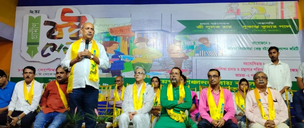 নিজস্ব প্রতিনিধি. হাওড়া নিউজ ২৪, আমতা- “ বই ধরো বই পড়ো “- শুক্রবার বিকেলে এই বার্তাকে সামনে রেখে পদযাত্রার মাধ্যমে শুরু হল দ্বিতীয় গ্রামীন বই মেলা আমতা। আমতা বিধানসভা কেন্দ্র বইমেলা উদযাপন কমিটির উদ্যোগে জয়পুর পঞ্চানন রায় কলেজে আয়োজিত এদিন এই বইমেলার উদ্বোধন করেন রাজ্যের পূর্ত ও জনস্বাস্থ্য কারিগরি মন্ত্রী পুলক রায়। এদিনের এই অনুষ্ঠানে অন্যদের মধ্যে উপস্থিত ছিলেন সাহিত্য একাডেমী পুরস্কার প্রাপ্ত সাহিত্যিক স্বপ্নময় চক্রবর্তী,বই মেলা কমিটির প্রতিষ্ঠাতা সভাপতি তথা আমতার বিধায়ক সুকান্ত পাল সহ অন্যান্যরা।