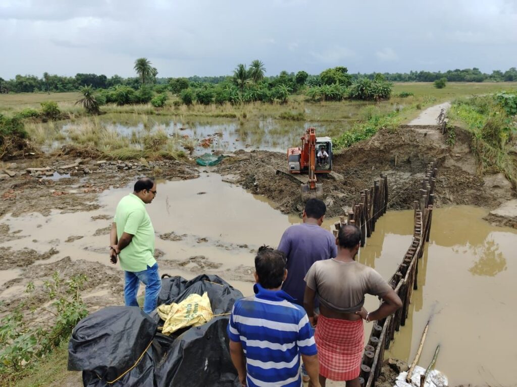 বন্যায় আমতা ২ নং ব্লকের ভেঙে যাওয়া নদী বাঁধ সংস্কারের কাজ শুরু