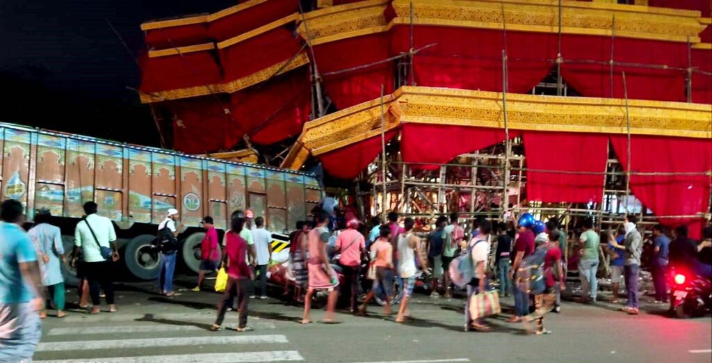 নাবঘড়া সার্বজনীন দুর্গা পুজো মন্ডপে ঢুকে গেল ট্রেলার