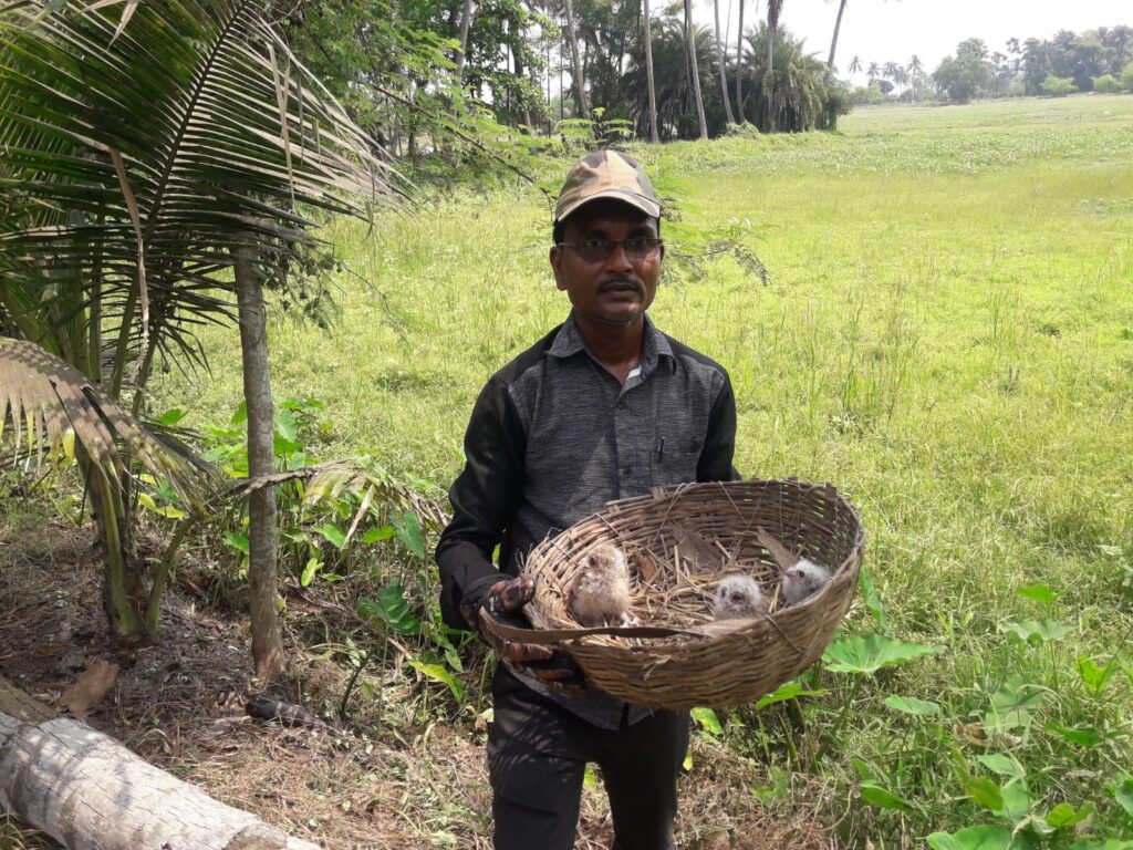 বৃহস্পতিবার সকালে নারকেল গাছটি ভেঙে পড়ায় তিনট ছানা নীচে পড়ে যায়। নিশীথ তেওয়ারি বিষয়টি লক্ষ্য করে পরিবেশকর্মী দেবাশীষ সাঁতরাকে বিষয়টি জানান। এরপর দেবাশীষ গ্রামে গিয়ে লক্ষ্ণী পেঁচার ছানাগুলোকে উদ্ধার করে তাদের পুর্নবাসনের ব্যবস্থা করেন।
