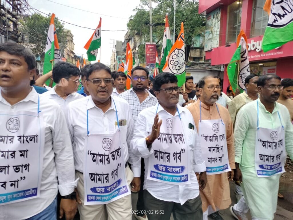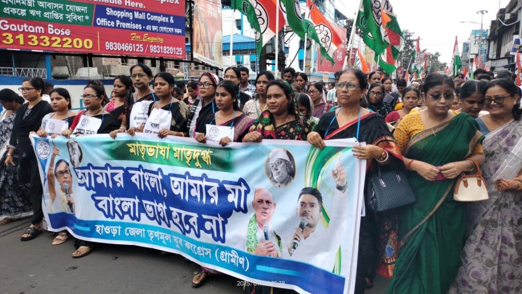 উলুবেড়িয়ায় তৃণমূলের প্রতিবাদ মিছিল