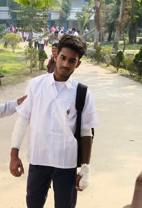 রাইটারের সাহায্যে পরীক্ষা দিল আহত মাধ্যমিক পরীক্ষার্থী